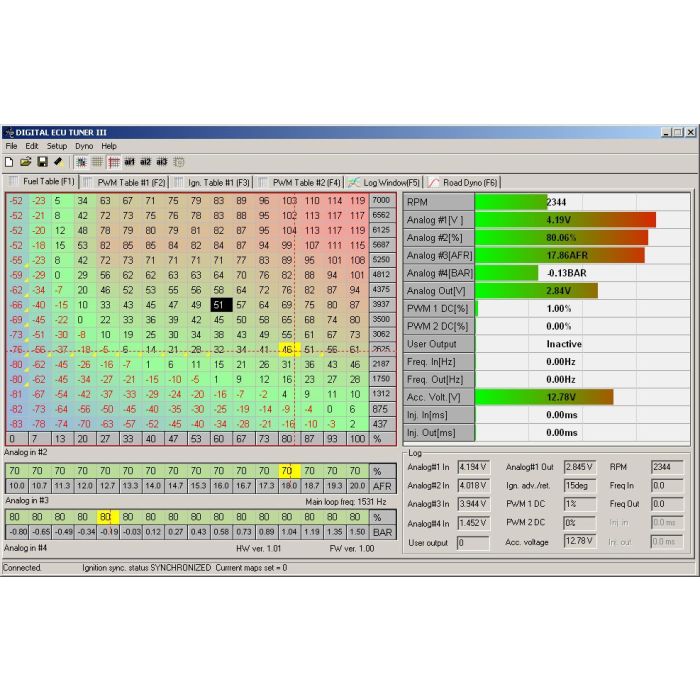 4 niezależne mapy 16x16 (mapa paliwa, dwie mapy PWM, mapa zapłonu),