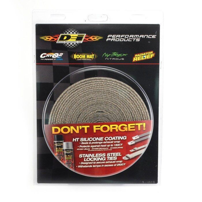 DEI nie zaleca owijania układów wydechowych wykonanych z tytanu. Aluminium używane do produkcji tytanowych układów wydechowych jest zazwyczaj cienkie i szybko odprowadza ciepło. Owijanie jakiejkolwiek rury wydechowej wykonanej z tytanu, niezależnie od marki, nie jest zalecane. Zbyt duża ilość nieodprowadzonego ciepła może sprawić, że stanie się kruchy i podatny na przedwczesne pękanie. Do redukcji ciepła w tym przypadku DEI zaleca stosowanie alternatyw, takich jak elastyczne osłony termiczne DEI.