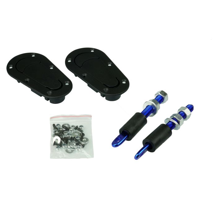 Płaskie zapinki maski marki JRspec są łatwe do zamontowania w samochodzie. W komplecie znajdują się dwie sztuki zapinek wraz z śrubkami potrzebnymi do montażu. Solidna konstrukcja zapewnia bezpieczeństwo i wygodę użytkowania.