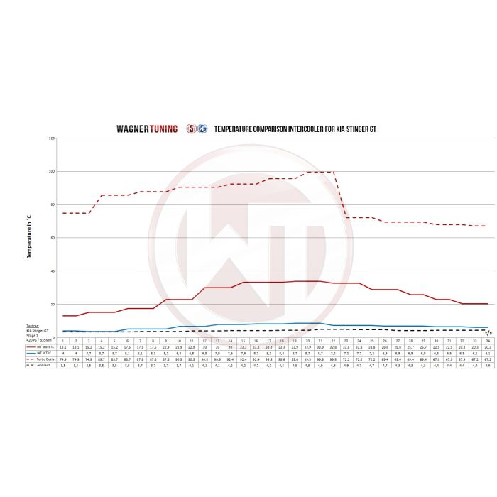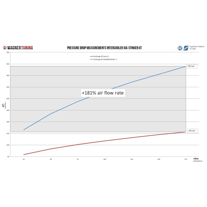 Inżynierowie Wagner Tuning zwiększyli rozmiar i wydajność rdzenia intercoolera, a także ulepszyli konstrukcję boczków, aby usunąć wszelkie wąskie gardła OEM, co skutkuje zwiększonym natężeniem przepływu i poprawą chłodzenia przepływającego powietrza.