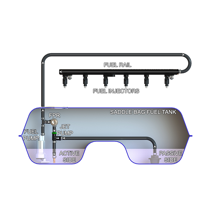Pasywna pompa wyrównująca poziom paliwa w 2 komorowych zbiornikach.