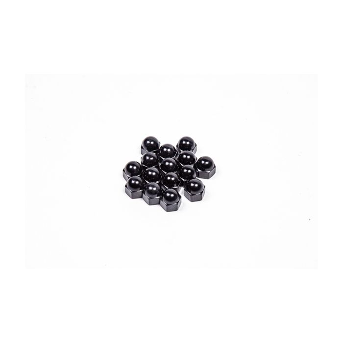 Czarne nakrętki wieńcowe do wielu komponentów Radium Engineering (uchwyty pomp paliwa, zbiorniki buforowe paliwa, zbiorniki paliwa itp.). Przed 2020 r. dostarczane nakrętki wieńcowe z gwintem 10-32 były wykonane z nylonu. Te nowe nakrętki 10-32 są frezowane z litego aluminium. Aby zapobiec przewodzeniu elektrycznemu, następnie poddaje się je anodowaniu typu II na czarno.