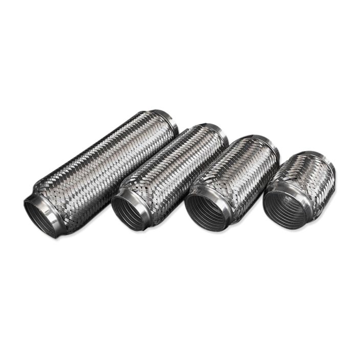 Nierdzewny łącznik elastyczny do wydechu, pasujący do rury 45mm, który jest niezbędnym elementem przy budowie układu wydechowego. Zastosowanie łącznika redukuje drgania wynikające z pracy wydechu podczas pracy silnika i w trakcie jazdy. Produkt FMIC posiada wewnętrzny peszel, który znacznie wzmacnia całą konstrukcje łącznika, dzięki czemu można go stosować w samochodach z turbo, nawet z wysokim doładowaniem i launch control'em. Do wyboru długości 100mm, 150mm, 200mm i 250mm.