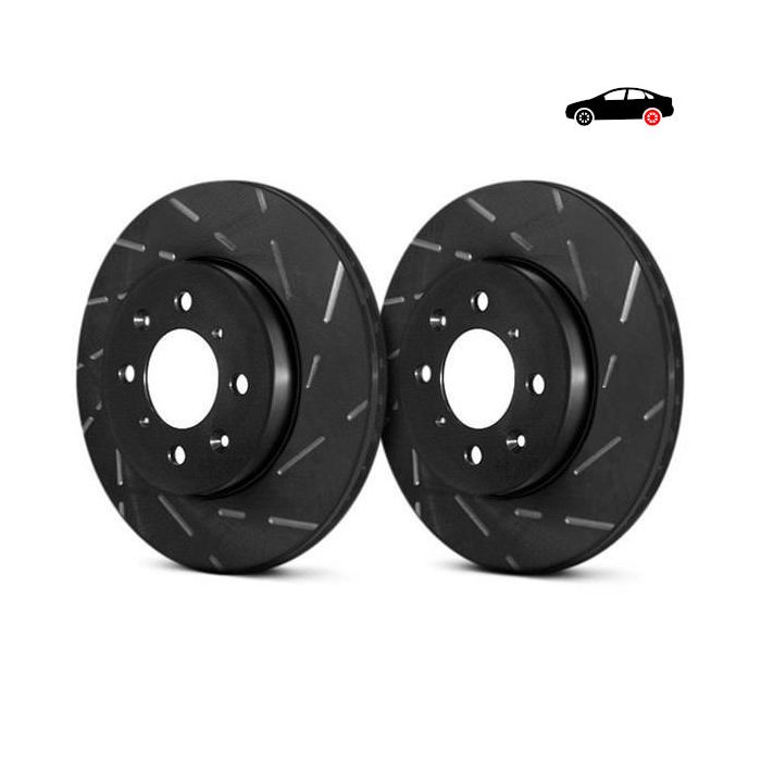 Tarcze hamulcowe EBC USR, do użytku drogowego oraz okazjonalnego na torze w samochodach sportowych i tuningowanych. Przeznaczone do klocków o wysokim współczynniku tarcia. Delikatne nacięcia pomaga usunąć pył i gazy z powierzchni roboczej tarczy i klocka, dzięki temu tarcza jest mniej narażona na zniekształcenia. Największą zaletą jest fakt  że sprzyjają  równomiernemu zużyciu klocków i nie pozwalają na powstawanie progów na klockach i tarczach, co jest typowe dla tarcz sportowych. Wyprodukowane w Wielkiej Brytanii z żeliwa G3000 o dużej zawartości węgla.
