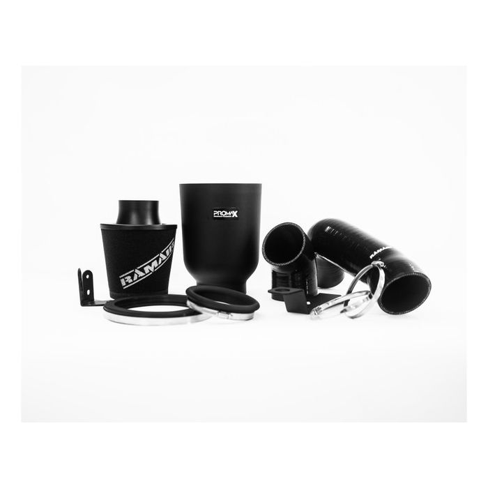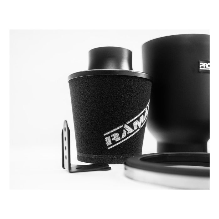 The ProMax enclosed filter has a modular design. Supplied with a bell mouth inlet and base adapter the housing can be combined with a foam Ramair or a pleated Proram filter. The aluminium enclosure shields against engine temps whilst the bell mouth is positioned for an increased cold air feed resulting in an added performance boost.