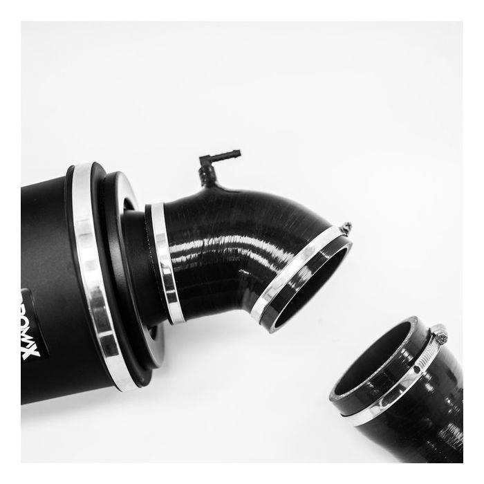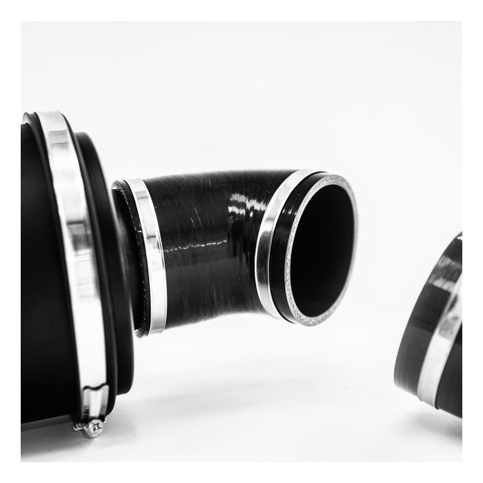 This kit also includes custom silicone hoses from filter to turbo to increase performance and overall design aesthetics. The added hoses help create a more direct, undisturbed air flow for max performance gains.